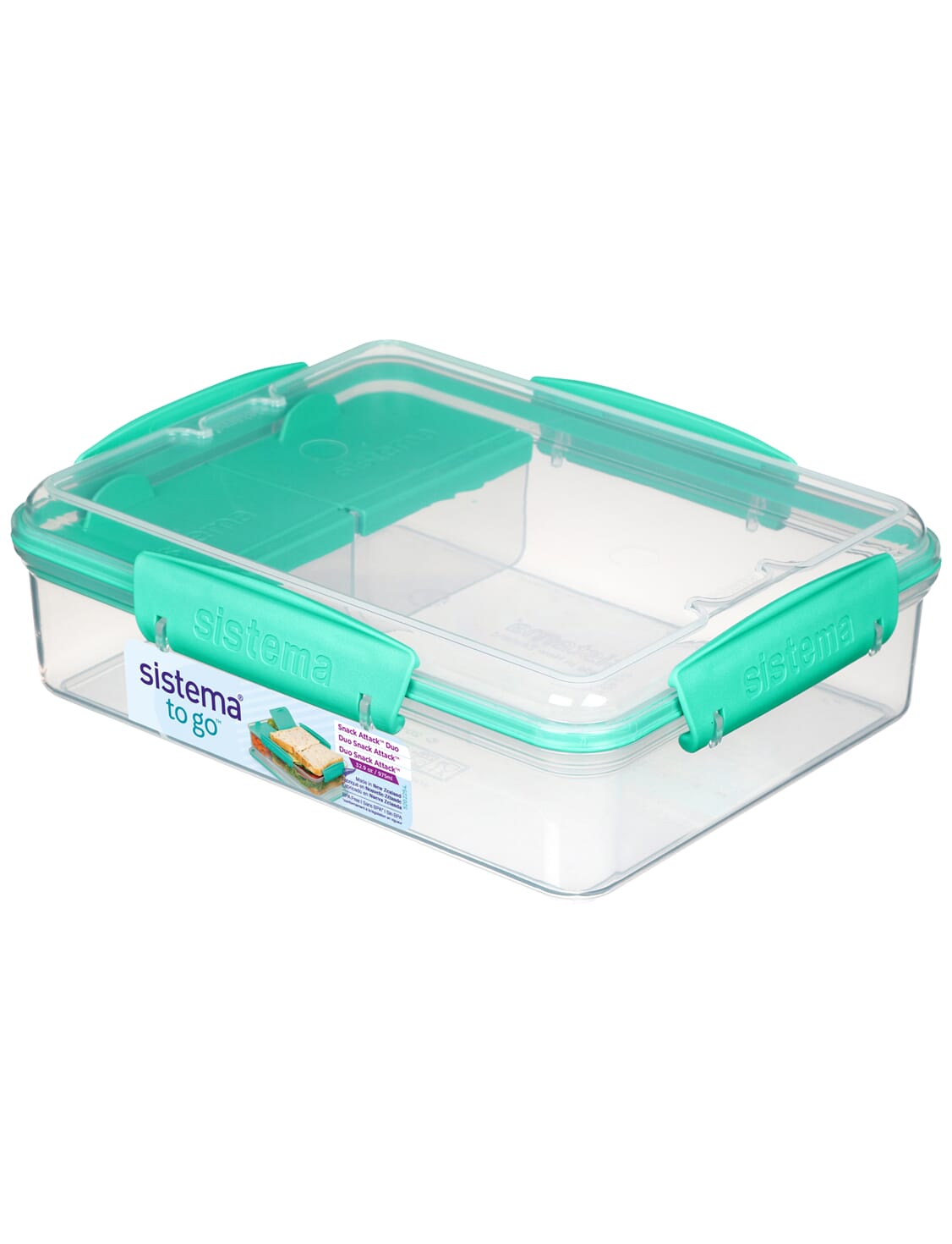Sistema® TO GO™ Stax™ 1L Leakproof Lunch & Snack Container with Secure Lid, and 2-Compartment Tray.