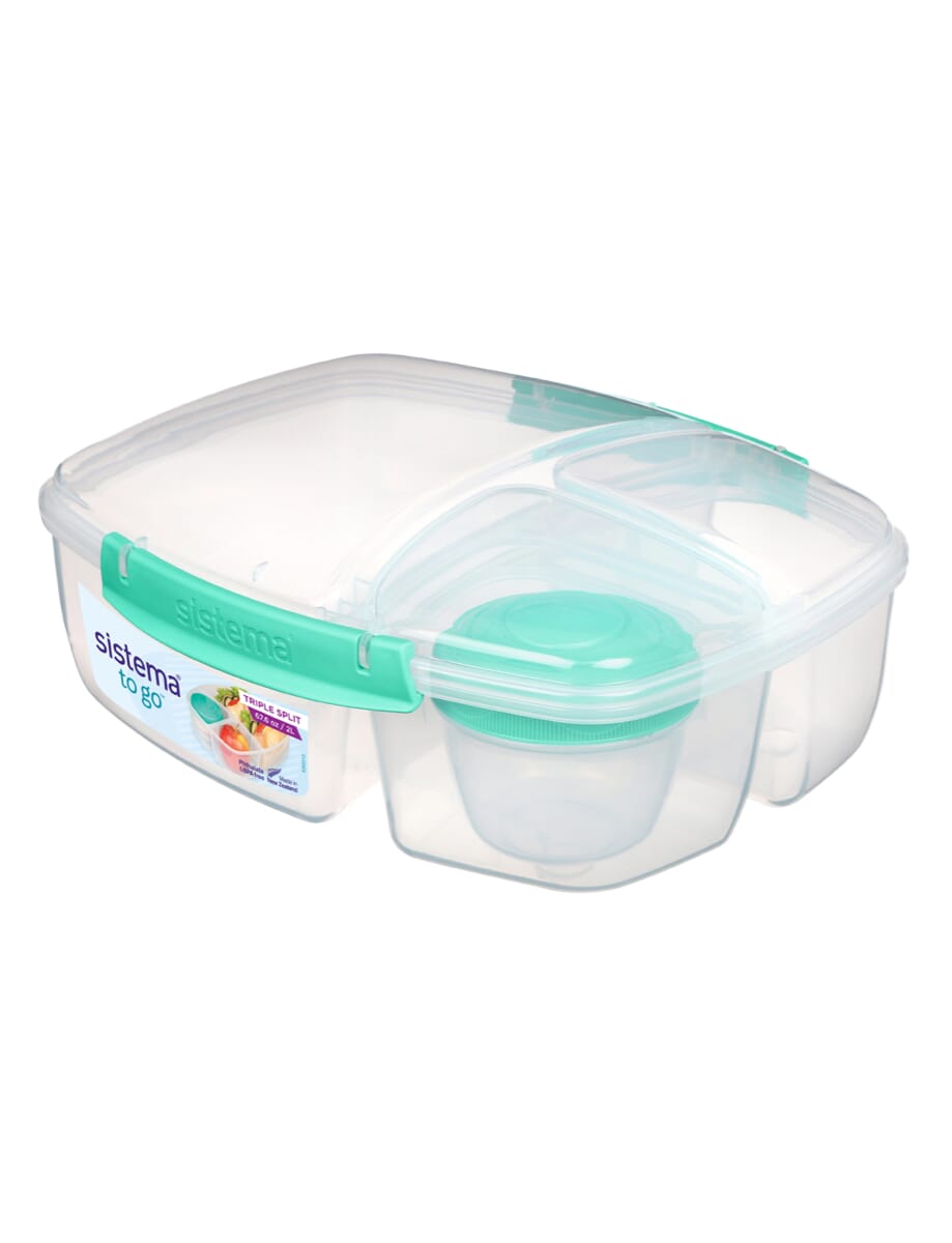 The Sistema® Triple Split TO GO™ is perfect for transporting your lunch and snacks to work, school or the park while helping to cut down on using plastic bags, cling film and foil.