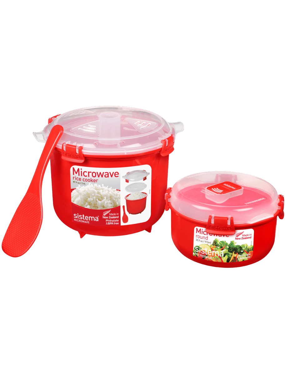 The Sistema® Microwave™ Rice Cooker and Round Combo is the perfect pack for cooking rice and reheating meals.