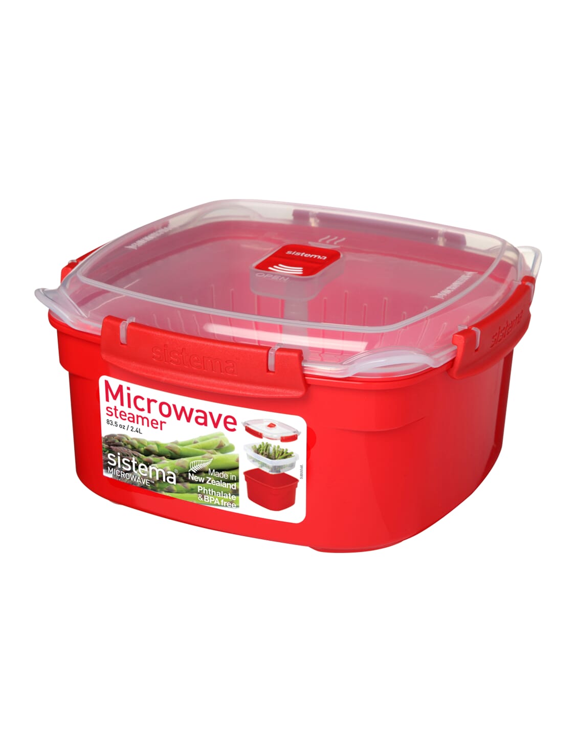 The Sistema® Microwave™ Steamer has been specifically designed for steaming vegetables, fish and poultry. Just add water to the base, add your ingredients to the steaming basket and close the distinctive Sistema® easy-locking clips. Open the steam vent, and cook or reheat.