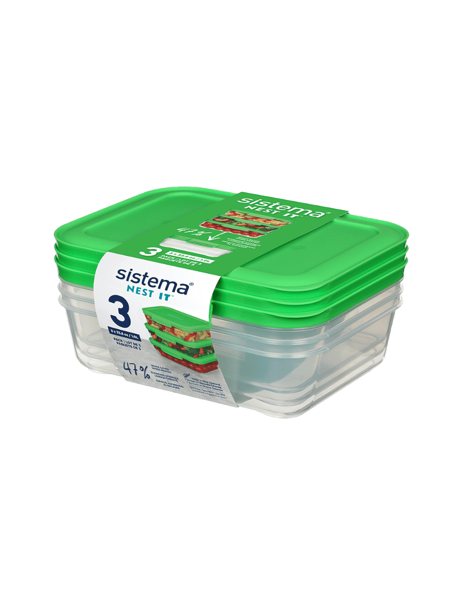 Sistema® NEST IT™ Meal Prep™ containers make meal prepping a breeze. These convenient multi-compartment reusable containers allow you to easily separate your vegetables, fruits, proteins and grains to keep them fresher for longer, so you and your family can eat a more balanced diet.