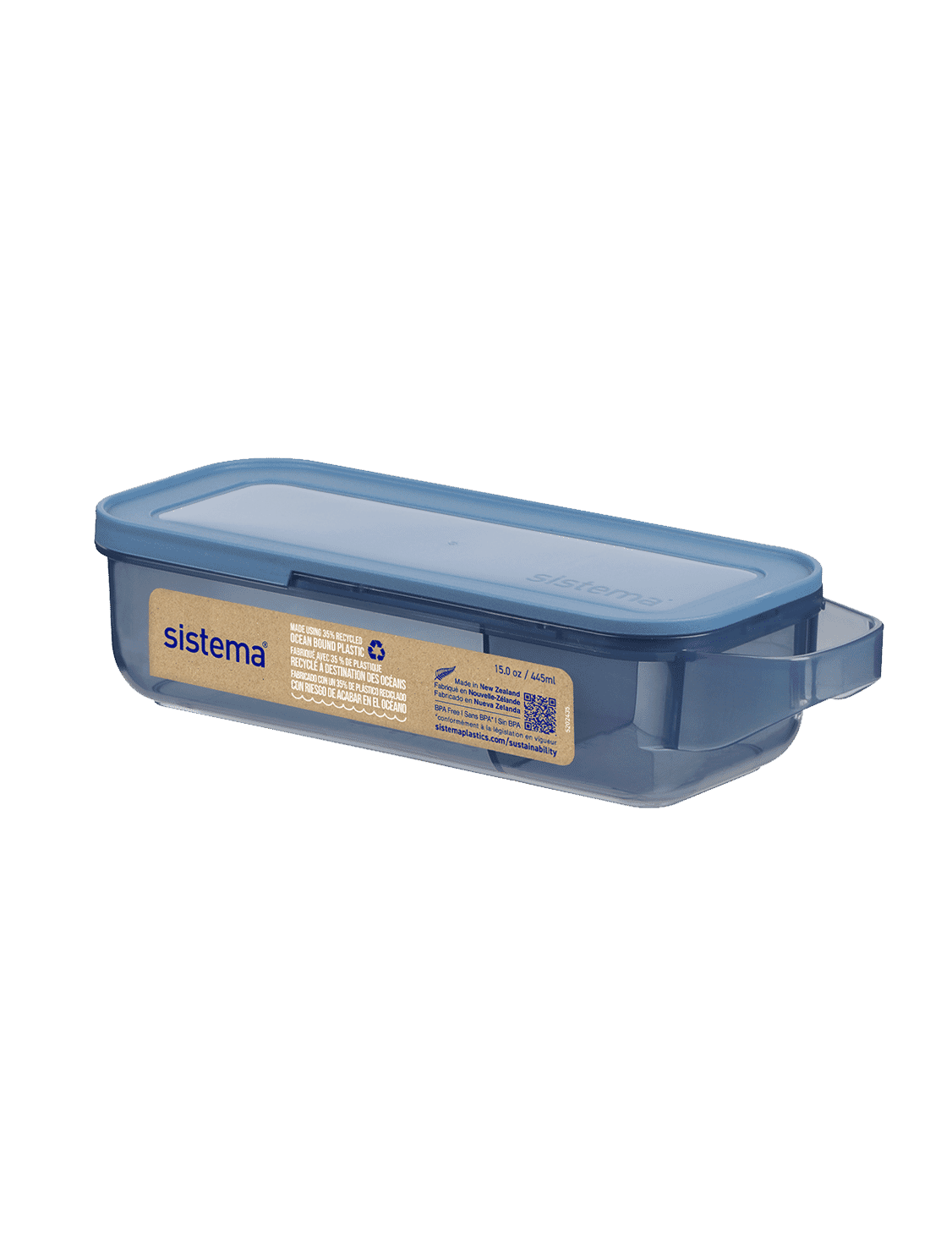 The Sistema® 445ml Slide 'n' Snack™ contains 35% recycled ocean bound plastic. It is food-safe, d...