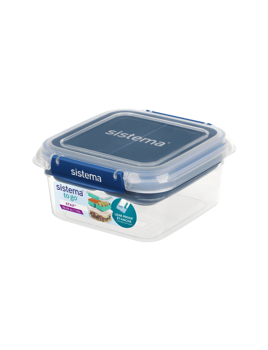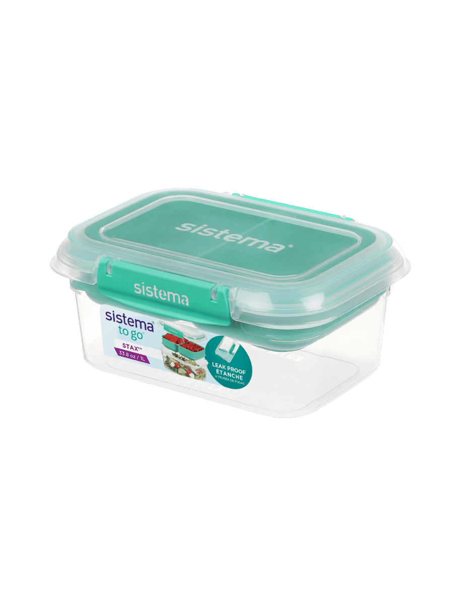 Sistema® TO GO™ Stax™ 1L Leakproof Lunch & Snack Container with Secure Lid, and 2-Compartment T...
